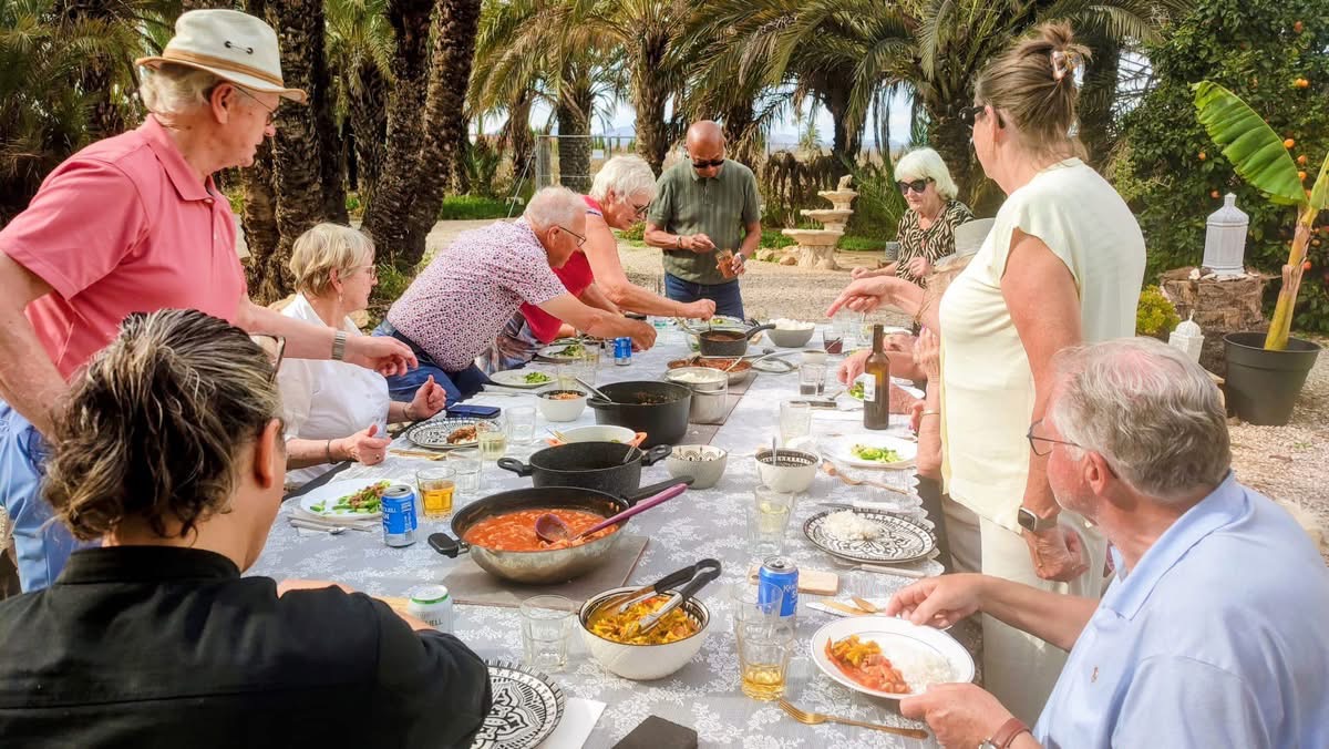 Op Instagram had ik een stukje gelezen over aanschuiven bij “Join in Table at John”. Gastrouw en gastheer John komen oorspronkelijk uit Nederland. Zij wonen op een prachtige locatie, midden in de natuur onder de palmbomen in de buurt van Elche. Sinds vorig jaar koken zij voor maximaal 22 personen. Een heerlijke Indonenesische maaltijd had John klaar gemaakt. Wij hadden geluk konden aanschuiven.