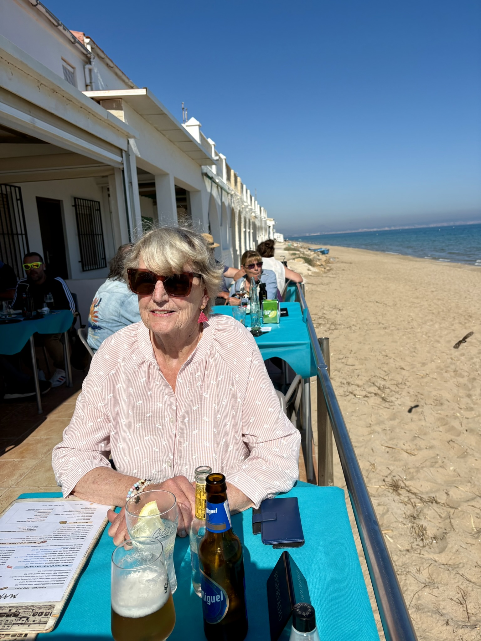Dinsdag 24 september rijden wij naar La Manga een prachtig strand aan de Middellandse Zee. Even pauzeren in een strandtent.