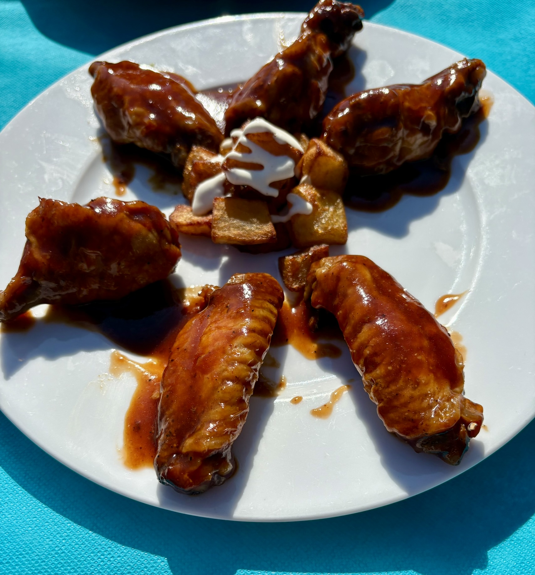 Hapje eten bij het badhuis San Antonio. Drie gangenmenu voor zeven euro.